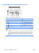 Clavier Tableau 1-4 Éléments du clavier 1 FRWW 1 Touches de fonction Ces touches permettent d'effectuer des fonctions spéciales, selon l'application utilisée. 2 Touches d'édition Exemples : Inser, origine, Page précédente, Suppr, Fin et Page suivante. 3 Voyants d'état Indiquent l'état des paramètres de l'ordinateur et du clavier (Verr num, Verr maj et Arrêt défil). 4 Touches numériques Ces touches offrent la même fonction que le clavier numérique d'une calculatrice.