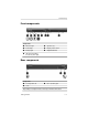 First-time setup Top components Component 1 Power light 8 Ambient light sensor 2 Power button 9 Num lock light 3 Info Center button - Volume mute button 4 Wireless button q Volume mute light 5 Wireless light w Volume down button 6 Presentation button = Volume up button 7 Caps lock light r Calculator button 1–2 Getting Started