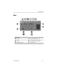 First-time setup Pointing devices and fingerprint reader Component 1 Fingerprint reader (select models only) 6 TouchPad scroll zone 2 Left pointing stick button (select models only) 7 Right TouchPad button 3 Pointing stick (select models only) 8 Center TouchPad button (select models only) 4 Center pointing stick button (select models only) 9 Left TouchPad button 5 Right pointing stick button (sleet models only) - TouchPad 1–4 Getting Started