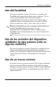 Dispositivos señaladores Configuración de las preferencias del TouchPad Propiedades del mouse en Windows le permite personalizar la configuración de dispositivos señaladores, incluyendo: ■ Punteo en el TouchPad, que le permite puntear el TouchPad una vez para seleccionar un objeto o dos veces para hacer doble clic sobre un objeto (activado por función predeterminada).