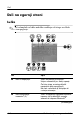Deli Del Opis 3 tipalo osvetljenosti Zazna razpoložljivo svetlobo. 4 lučka Caps lock Sveti: vklopljene so velike črke. 5 lučka Num lock Sveti: številska tipkovnica je vklopljena. 6 lučka utišanega zvoka Sveti: zvok je sistema izklopljen. 7 lučka za dejavnost pogona IDE (Integrated Drive Electronics) Utripa: računalnik dostopa do trdega diska ali optičnega pogona. 8 lučka za akumulator Rumena: akumulator se polni. Zelena: akumulator je skoraj napolnjen.