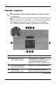 Deli Del Opis 2 gumb Info Center Zažene informacijsko središče Info Center, ki omogoča odpiranje naslednjih programskih rešitev: Altiris Local Recovery, stik s HP-jem, pomoč in podpora, Accessories Product Tour (Options Demo), ProtectTools Security Manager, Software Setup, System Information in Wireless Assistant. 3 gumb za vklop in izklop brezžične naprave* Izklopi ali vklopi delovanje brezžičnih naprav, vendar ne vzpostavi brezžične povezave.