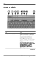 Deli Del Opis 4 srednji gumb kazalne palice (samo nekateri modeli) Deluje kot sredinski gumb na zunanji miški. 5 desni gumb kazalne palice Deluje kot desni gumb zunanje miške. (samo nekateri modeli) 6 področje za drsenje Za drsenje navzgor in navzdol. na sledilni ploščici* 7 desni gumb sledilne ploščice Deluje kot desni gumb zunanje miške. 8 sredinski gumb sledilne ploščice (samo nekateri modeli) Deluje kot sredinski gumb na zunanji miški.