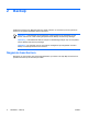 2 Backup HP Backup and Recovery Manager biedt een aantal manieren om een backup van het systeem te maken en het systeem optimaal te laten functioneren. Opmerking Geïnstalleerde stuurprogramma's, hulpprogramma's en applicaties van HP kunnen naar een cd of dvd worden gekopieerd met HP Backup and Recovery Manager. Opmerking Geformatteerde dvd±rw/r-schijven en dubbellaags-schijven zijn niet compatibel met HP Backup and Recovery Manager.