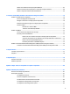 Utilizar as ferramentas de recuperação do Windows ...................................................................... 67 Utilizar ferramentas de recuperação f11 (somente em alguns modelos) ...................................... 68 Utilizar o suporte do sistema operativo Windows 7 ........................................................................ 69 12 Computer Setup (BIOS), MultiBoot e HP PC Hardware Diagnostics (UEFI) .........................................................