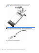 1. Disconnect the WLAN antenna cables (1) from the terminals on the WLAN module.