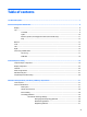 - Table of contents 1 Product description ....................................................................................................................................... 1 2 External component identification ................................................................................................................. 8 Display ................................................................................................................................................................... 8 Top ....