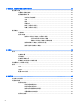 - 目录 1 欢迎使用 ............................................................................................................................................................ 1 查找信息 ............................................................................................................................................... 2 2 了解笔记本计算机 ............................................................................................................................................. 4 右侧 ..................................