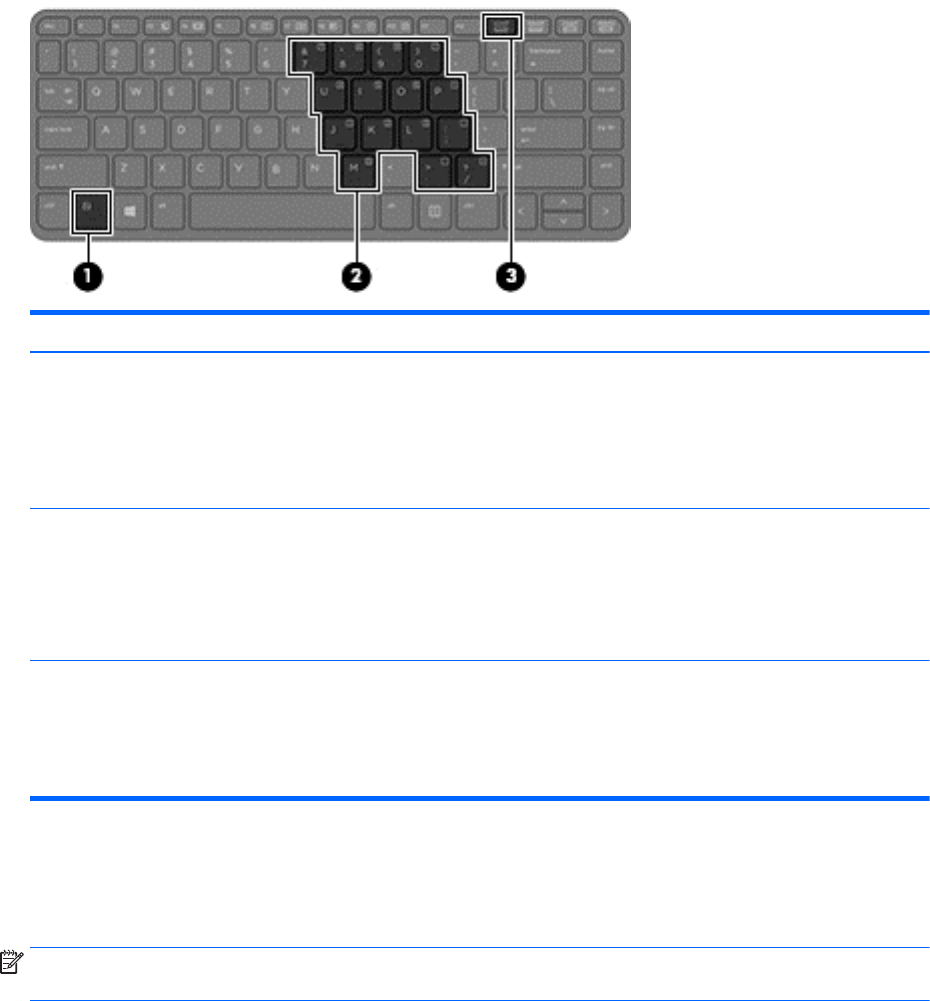 Ενσωματωμένο αριθμητικό πληκτρολόγιο Όταν είναι ενεργοποιημένο το αριθμητικό πληκτρολόγιο,