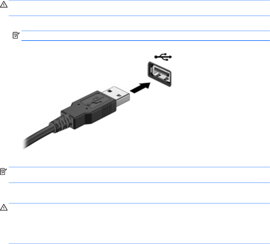 ΠΡΟΣΟΧΗ: Για να μειώσετε τον κίνδυνο πρόκλησης βλάβης σε μια υποδοχή USB, μην τραβάτε το