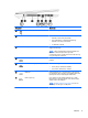 RJ-45-kontakt/lamper (nettverk) Brukes til tilkobling av en nettverkskabel.