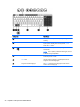 Trådløsknapp Brukes til å slå trådløsfunksjonen på eller av, men oppretter