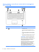 Ліва кнопка сенсорної панелі Виконує функції лівої кнопки зовнішньої миші.