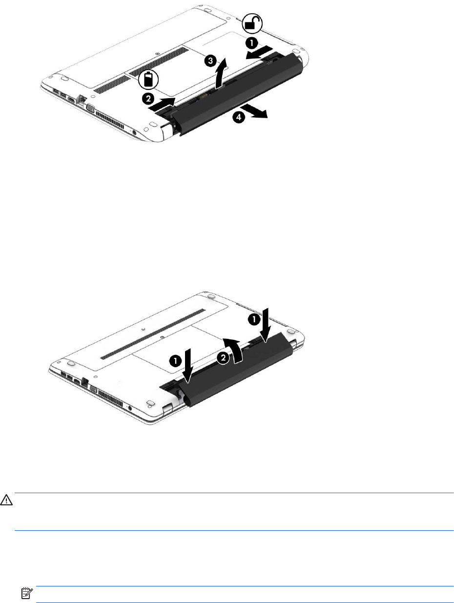 3. Kallutage akut ülespoole (3) ja eemaldage see arvutist (4).