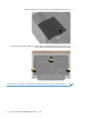 .5 הסר את מחשב HP TouchSmartבזהירות מהקיר והנח אותו כשפניו כלפי מטה על משטח שטוח המכוסה בבד יבש ונקי. זהירות: .6 המחשב כבד וייתכן שיידרשו שני אנשים להסרה מהקיר. תוך הקפדה לפעול לפי הוראות היצרן ,הסר את ההתקן להתקנה על קיר מגב מחשב .HP TouchSmart הרכבת מעמד המחשב בצע את הצעדים הבאים להתקנת מעמד המחשב על מחשב .HP TouchSmart .1 שחרר את שני הברגים בתחתית שמאבטחים את המכסה האחורי אל המחשב .המשך לסובב את המברג עד שתשמע חמש נקישות .