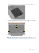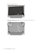 6 8. 컴퓨터의 아래 양쪽 구석에 링을 끼웁니다. 9. 컴퓨터에 후면 덮개를 다시 조립합니다. 덮개가 제자리에 끼워지도록 눌러준 다음 컴퓨터와 덮개 사이에 틈이 있는지 확인합니다.