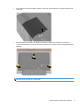 4 4. Rimuovere il coperchio posteriore dal computer. 5. Rimuovere le otto viti che fissano il supporto al computer. Sono presenti quattro viti rispettivamente nella parte inferiore destra e sinistra del computer. Mettere da parte le viti.