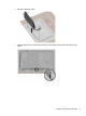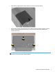 8. Apriete los dos tornillos de la parte inferior del equipo para fijar la cubierta posterior al equipo. Si tiene un tornillo (1) en el centro de la cubierta posterior, apriételo. 9. Vuelva a colocar la cubierta VESA en la parte posterior del equipo. 10. Coloque el equipo HP TouchSmart en posición vertical. 11. Conecte el cable de alimentación. 12. Conecte todos los cables que haya desconectado anteriormente.