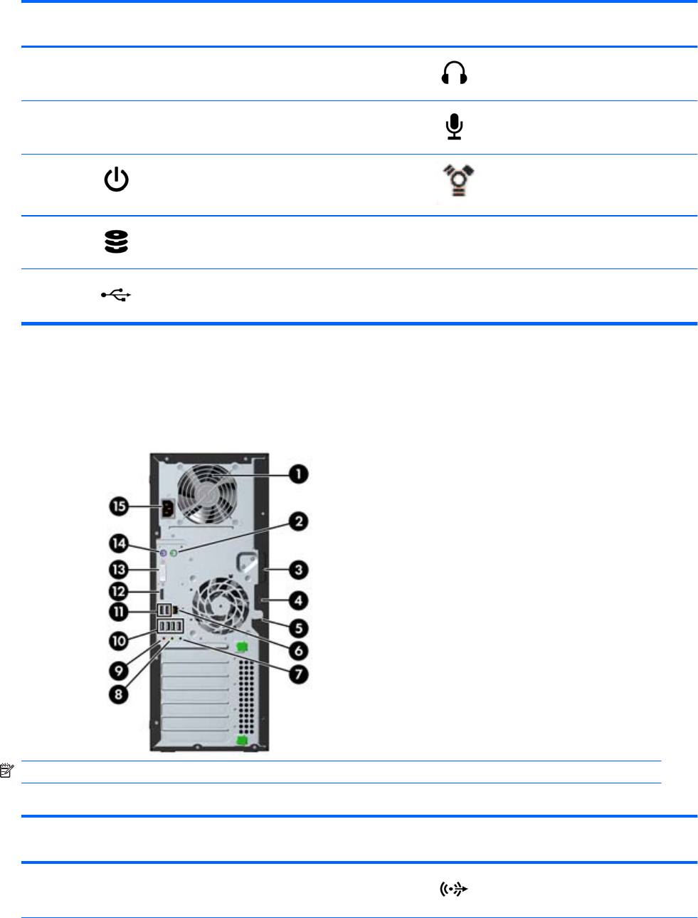 MEGJEGYZÉS: A hátlap csatlakozóinak címkéi szabványos ikonokkal és színekkel vannak ellátva.