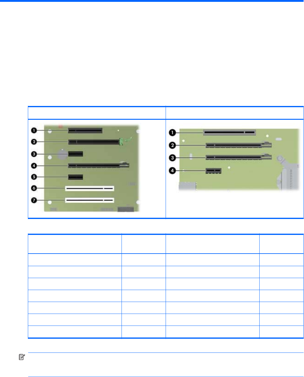 Az alábbi táblázat a HP Z210 munkaállomások bővítőhelyeit ismerteti.