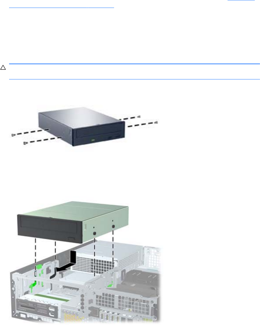 Optikai meghajtó beszerelése vagy visszahelyezése HP Z210 SFF munkaállomásba: