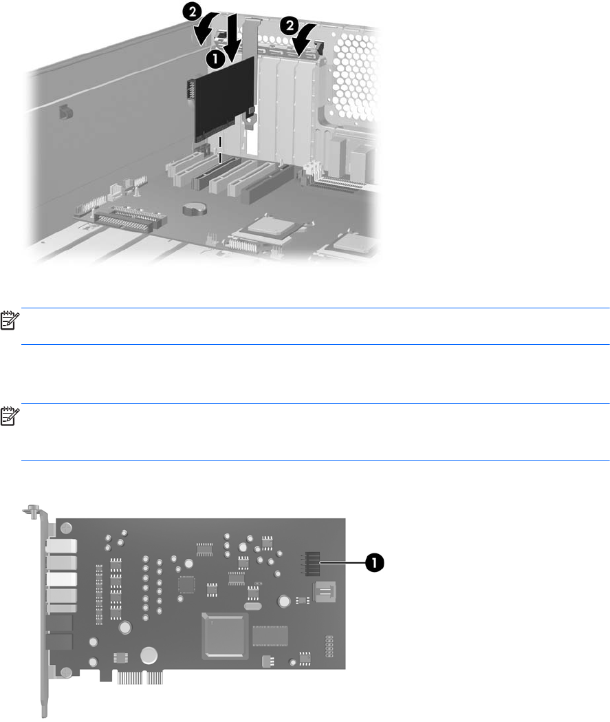 選択した PCIe 拡張スロットに Sound Blaster オーディオ カードを取り付け(1)、拡張スロット