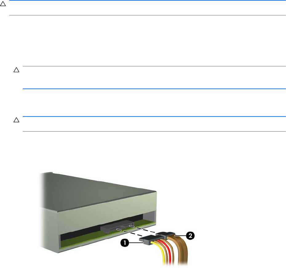 Dacă scoateţi o unitate optică, deconectaţi cablul de alimentare (1) şi cablul de date (2) din
