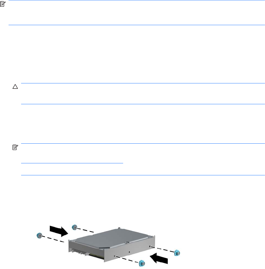 Figura 2-25 Montarea șuruburilor de ghidare de montaj cu izolaţie într-o unitate de disc de
