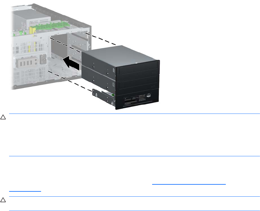 9. Glisaţi uşor unitatea în docul cel mai de sus disponibil, până când se fixează pe poziţie. Când