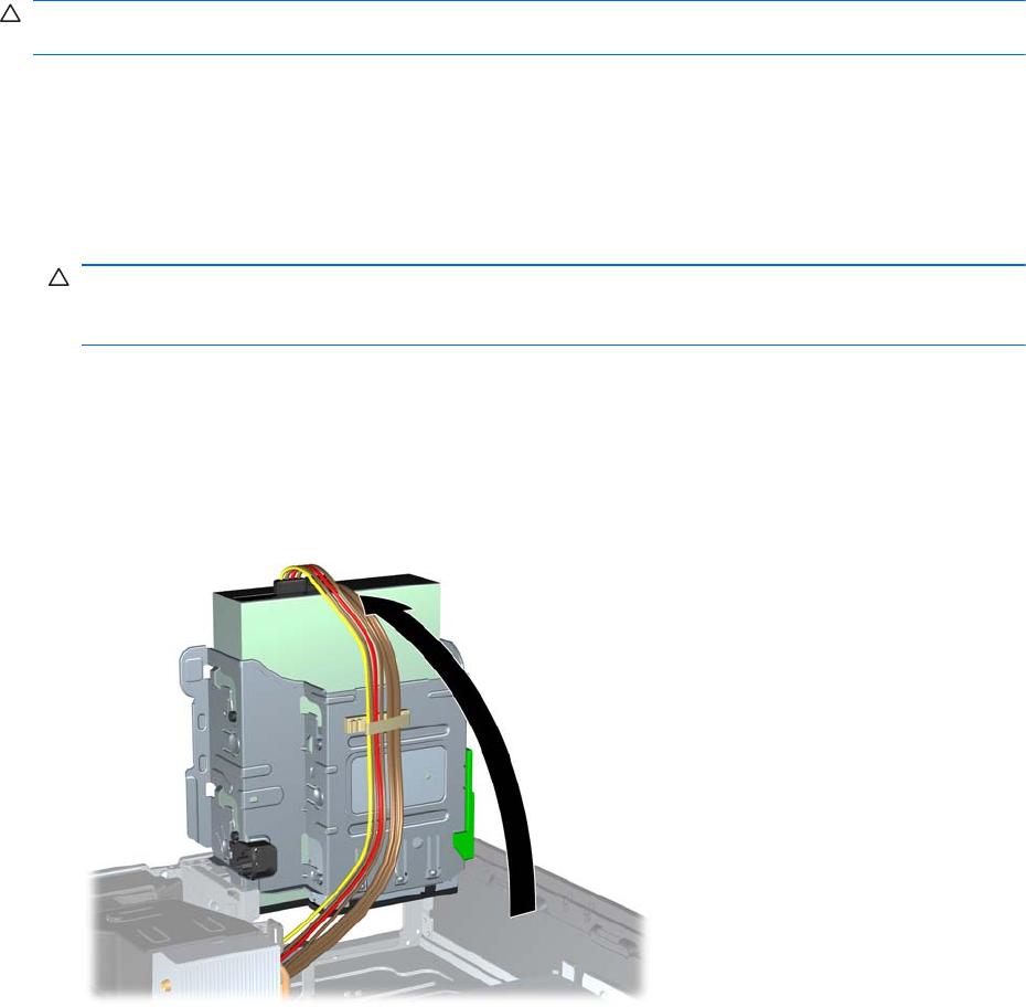 ĮSPĖJIMAS: prieš išimdami diskų įrenginį iš kompiuterio, iš diskų įrenginio išimkite visas