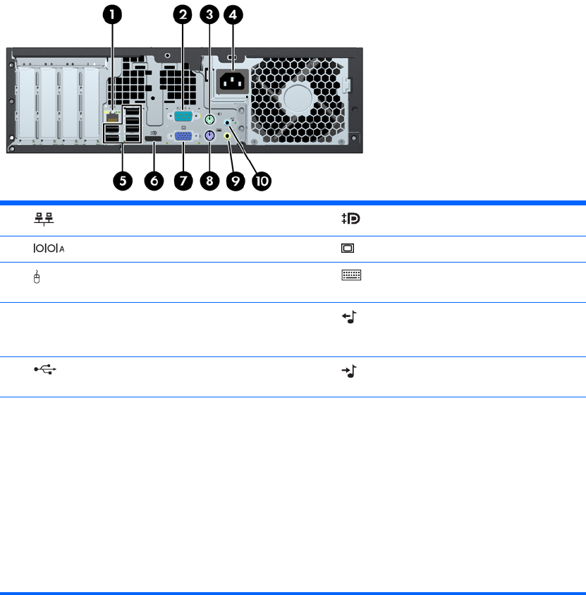 - Компоненты задней панели модели с уменьшенным корпусом Small Form Factor (SFF)