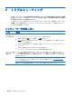 トラブル 解決方法 ソフトウェア プログ ラムおよびハード ウェア ドライバーの 再インストール 工場出荷時にインストールされたソフトウェア プログラムまたはハードウェア ドライバーのどれかが破損した場 合は、[リカバリ マネージャ]プログラムを使用して再インストールできます(一部のモデルのみ) 注記: コンピューターに付属の CD または DVD からインストールしたソフトウェア プログラムを再インストー ルする場合は、[リカバリ マネージャ]プログラムを使用しないでください。これらのプログラムは CD または DVD から直接再インストールしてください プログラムをアンインストールする前に、再インストールが可能であることを確認してください。もともとインス トールした場所(ディスクやインターネットなど)で現在も利用できることを確認します。または、対象のプログ ラムが、[リカバリ マネージャ]から再インストールできるプログラムの一覧に含まれていることを確認します 注記: 一部の機能は、Microsoft Windows が付属していないシステムでは使用できない場合があります。 [リカバリ マネージャ