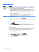 Software fejlfinding Symptom Mulig løsning Prøv disse metoder for at rette problemer med software: ● Sluk helt for computeren og tænd den derefter igen. Dette er den nemmeste (og ofte den bedste) måde. ● Opdater driverne (se Opdatering af enhedsdrivere nedenfor). ● Brug Microsofts softwareprogram til systemgendannelse og geninstallation af hardwaredriver (se Microsoft Systemgendannelse, senere i denne tabel).