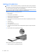 7. Brug plastiktappen til at løfte stiksiden af harddisken op i en vinkel (3), og fjern drevet (4) fra