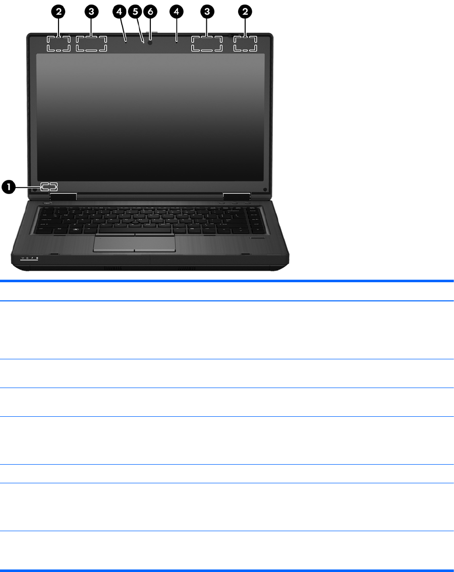 (5) 웹캠 표시등(일부 모델만 해당) 켜짐: 웹캠을 사용 중입니다.