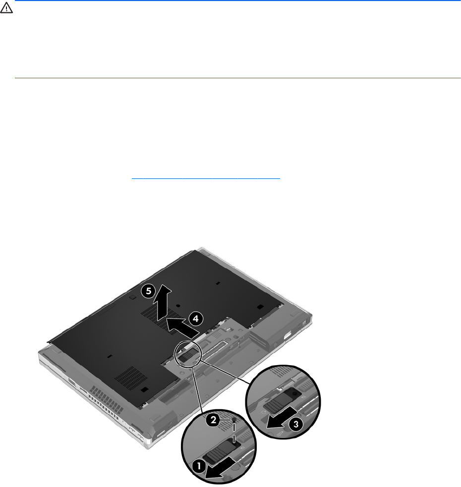 메모리 모듈 슬롯, 하드 드라이브, 규정 레이블 및 기타 구성 요소에 액세스하려면 아래쪽 덮개를 분리
