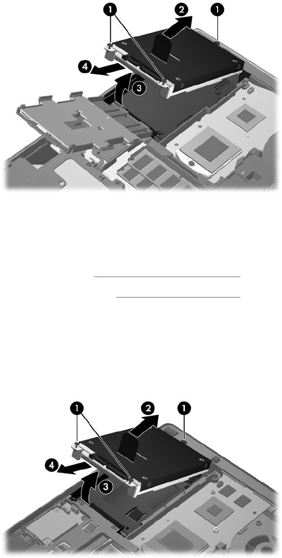 5. 하드 드라이브 나사 3 개(1)를 풉니다.