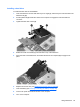 5. Press the smart card reader down and toward the side of the computer (2) to engage it into