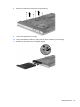 2. Pull the plastic tab (3) toward the center of the computer to engage the hard drive with the