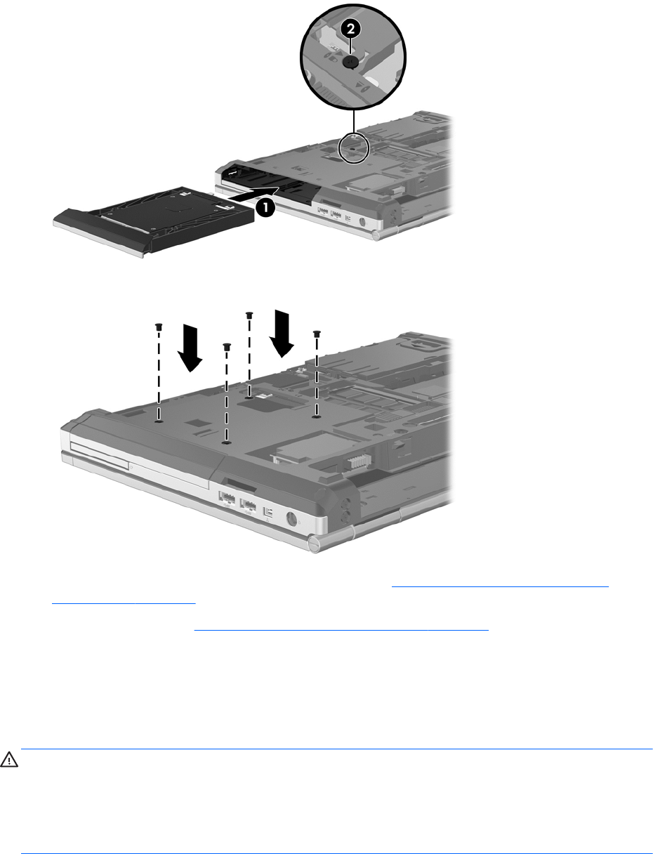 1. Қатты дискіні жаңартуға арналған орынға орнатып (1), бұранданы бұрап бекітіңіз (2).