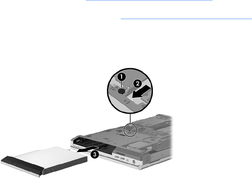 10. Оптикалық диск жетегін жаңартуға арналған орыннан шығарып алыңыз (3).