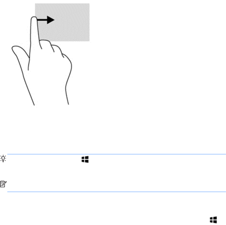 okraje zařízení TouchPad.