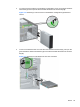 side of the bay that secures the drive in place (1), then slide the drive out of the bay (2).