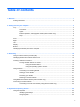 Table of contents 1 Welcome .......................................................................................................................................................... 1 Finding information ............................................................................................................................... 2 2 Getting to know your computer ..................................................................................................................... 3 Top .....................