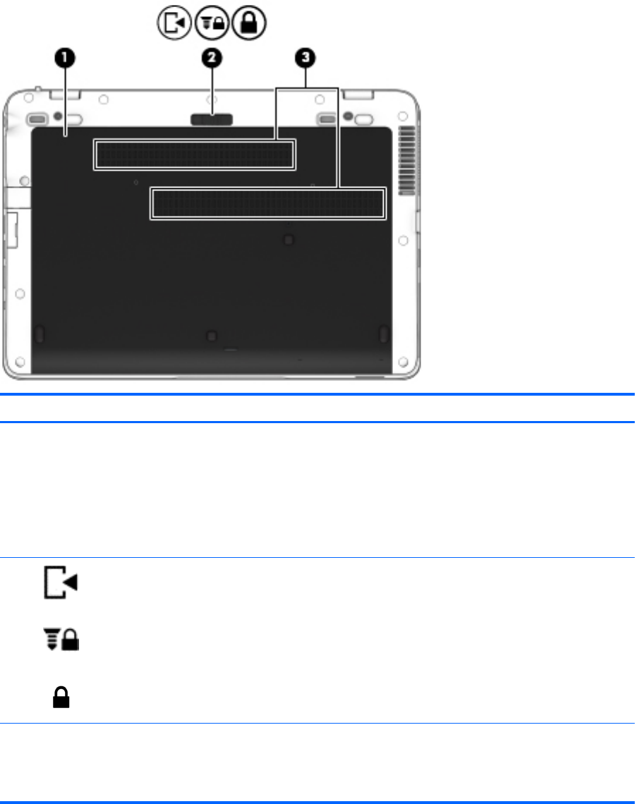 底蓋 提供對硬碟插槽、無線 LAN (WLAN) 模組插槽、