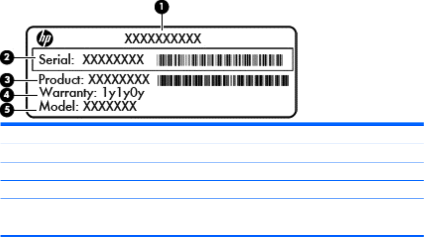 HP 行動寬頻模組序號標籤(僅限特定機型)— 提供 HP 行動寬頻模組的序號。此標籤位於電池插