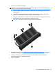 1. Coloque a unidade no compartimento da unidade de disco rígido, (1), verificando se a guia de