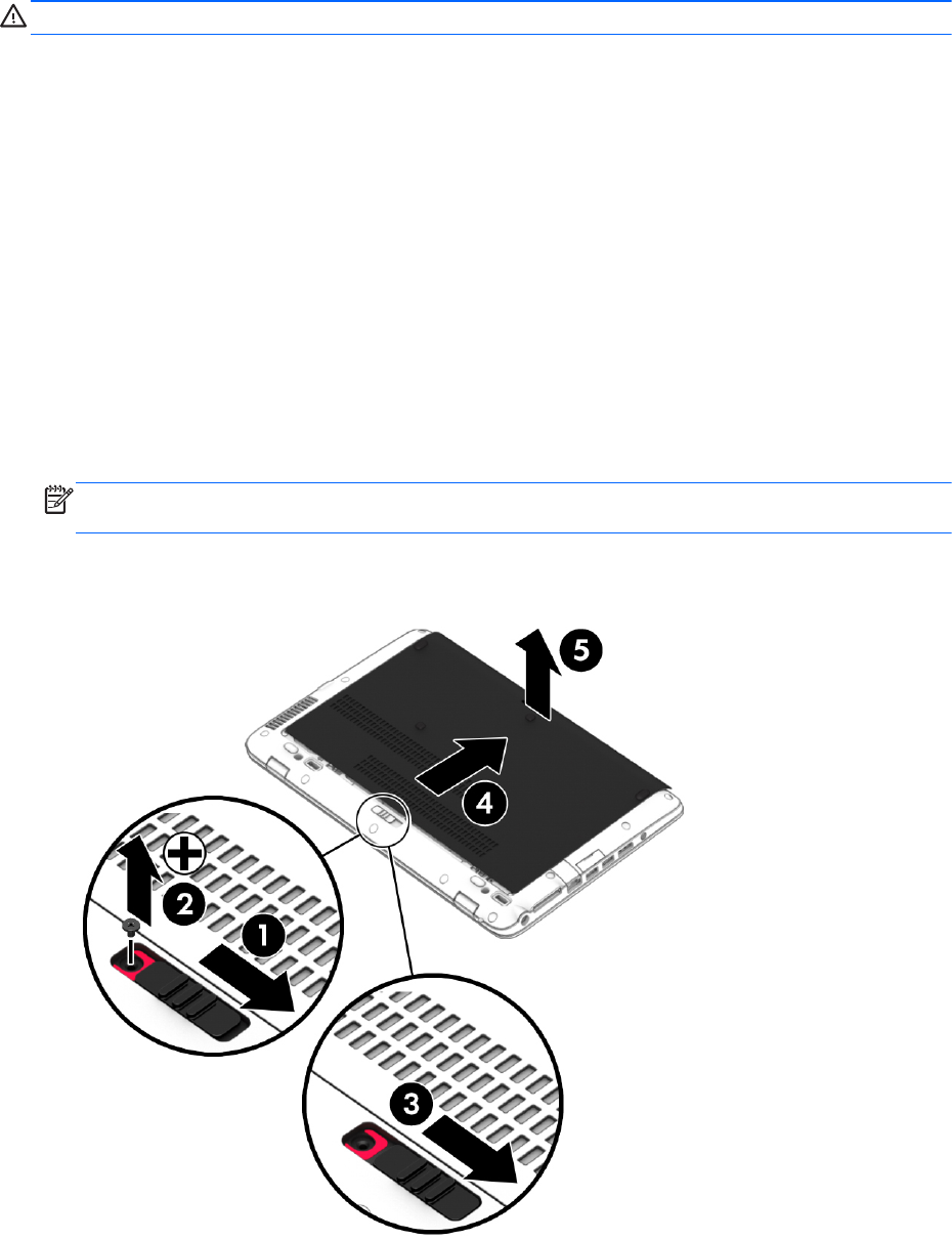 2. Плъзнете сервизната вратичка към предната страна на компютъра (4) и повдигнете, за да
