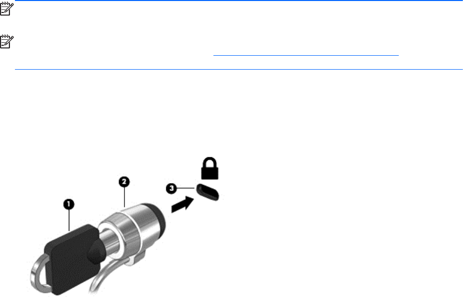 3. Поставете фиксатора на кабела в гнездото за защитен кабел на компютъра (3) и след