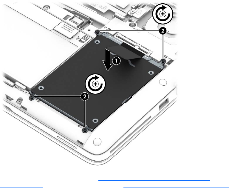 2. Поставете отново четирите винта (2), за да захванете твърдия диск.